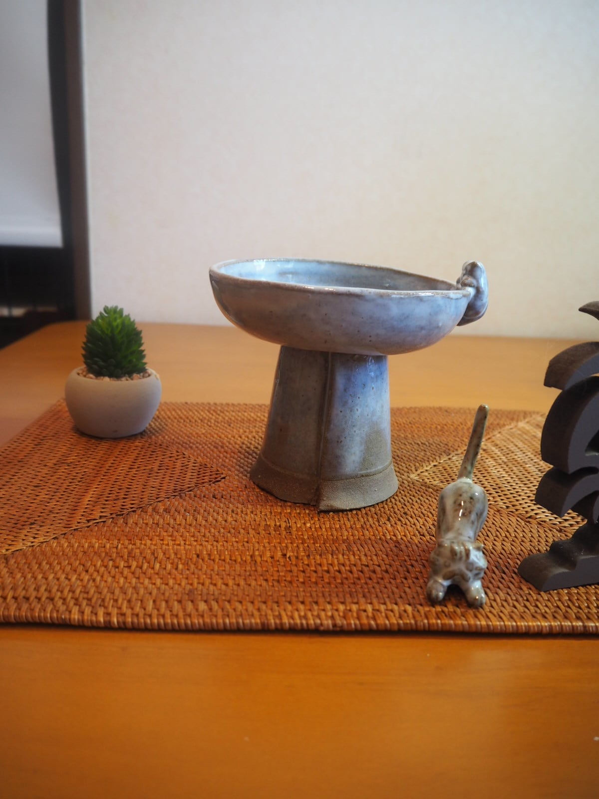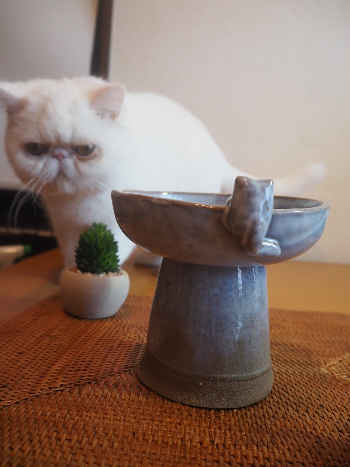 猫用の食器作りに1年ほど前からハマり、手びねりで、敢えていびつな形の猫の食器を作っています。